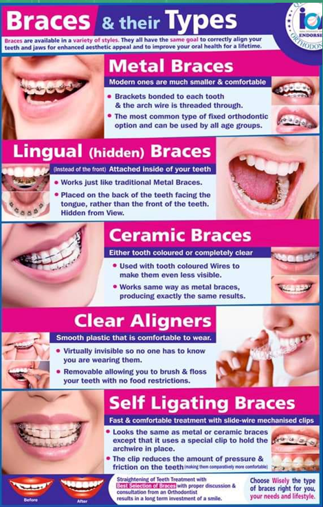 and guide the teeth to the correct position. They are made up of wires, brackets, and bands. Dental Braces aid